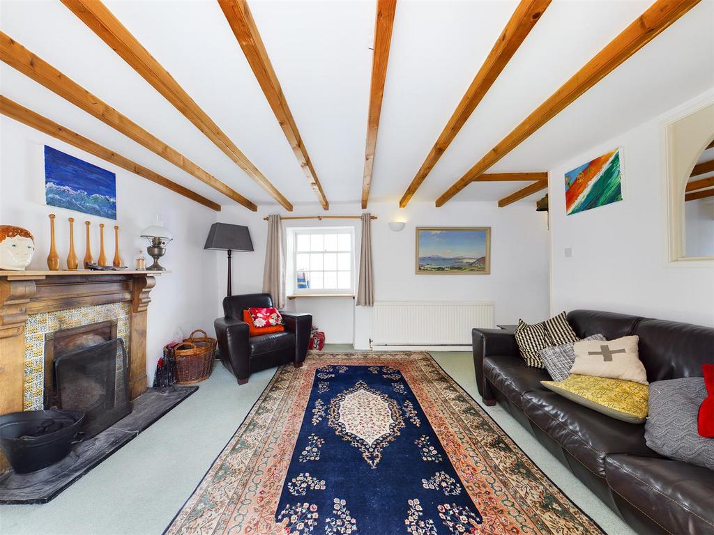 This delightful Cornish cottage welcomes you through an inviting entrance hallway that flows into a generous dining room. The living room features an open fire and exposed beamed ceiling, adding warmth and traditional charm. From here, step into the sunroom, an ideal spot to unwind or use as an office space, and a cleverly integrated utility cupboard adds to the home’s practicality.