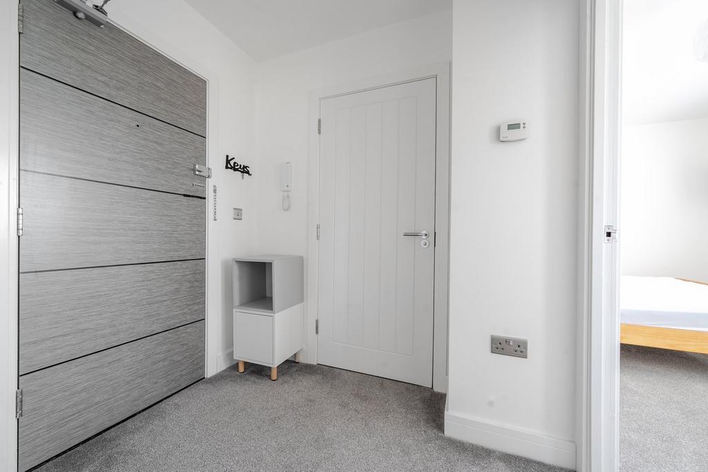 Intercom system. Cupboard housing electric boiler. Radiator. Doors into all rooms.