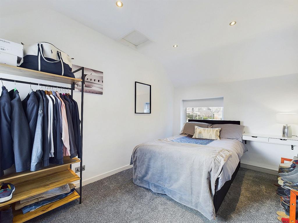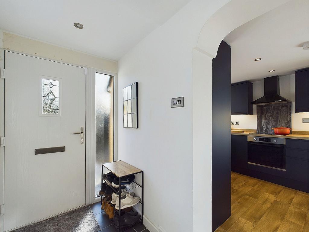 Outside, there is a well-maintained front garden, offering a good-sized lawn area with borders. The property also benefits from a private driveway,
