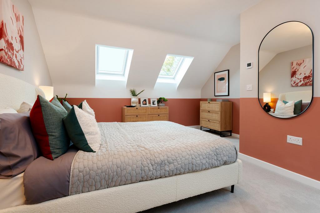 Second Floor: Enjoy the top storey which boast an extra large storage space to keep your home neat and tidy, and a spacious primary suite promising light and space. The main bedroom is served by an en-suite with contemporary sanitaryware.