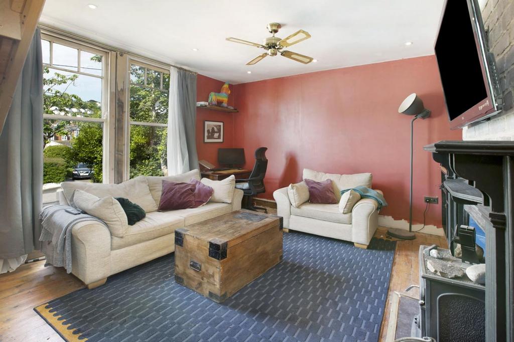 Sash windows overlooking the front gardens, electric Dimplex independently controlled heater, chimney with exposed brickwork.