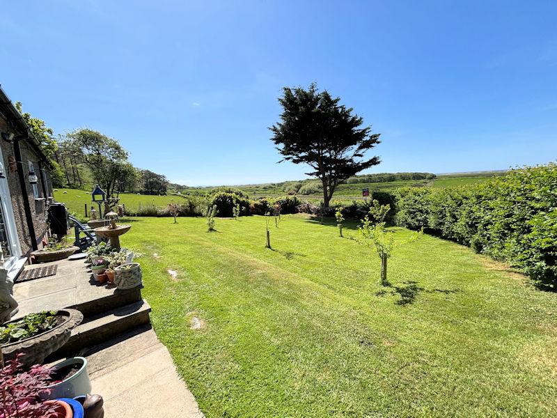 This charming bungalow was originally built in 1911 as staff accommodation for Rhowniar country house. Retaining all the charm of a period property with fireplaces in the bedrooms and kitchen (not in working order) yet with the modern day conveniences of upvc double glazing and oil central heating - the Worcester boiler was installed in 2021. The cottage comprises entrance via the original porch into the lounge with wood burning stove (fitted 2023), leading onto the kitchen with room for a small table and chairs, 2 double bedrooms and bathroom. The lodge sits in its own grounds which are mainly laid to lawn with mature hedging and trees and recently planted orchard. The views from all front facing rooms reach over the fields to the sea in the distance and the sunsets are sublime. There is parking over the vehicular lane for 2 cars ( this is not on the deeds to the property). This property is a main residence.
