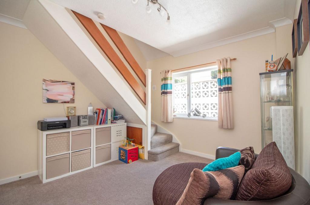 Stairs to the first floor, double glazed window to side aspect, radiator, coved and textured ceiling, door to bedroom two.