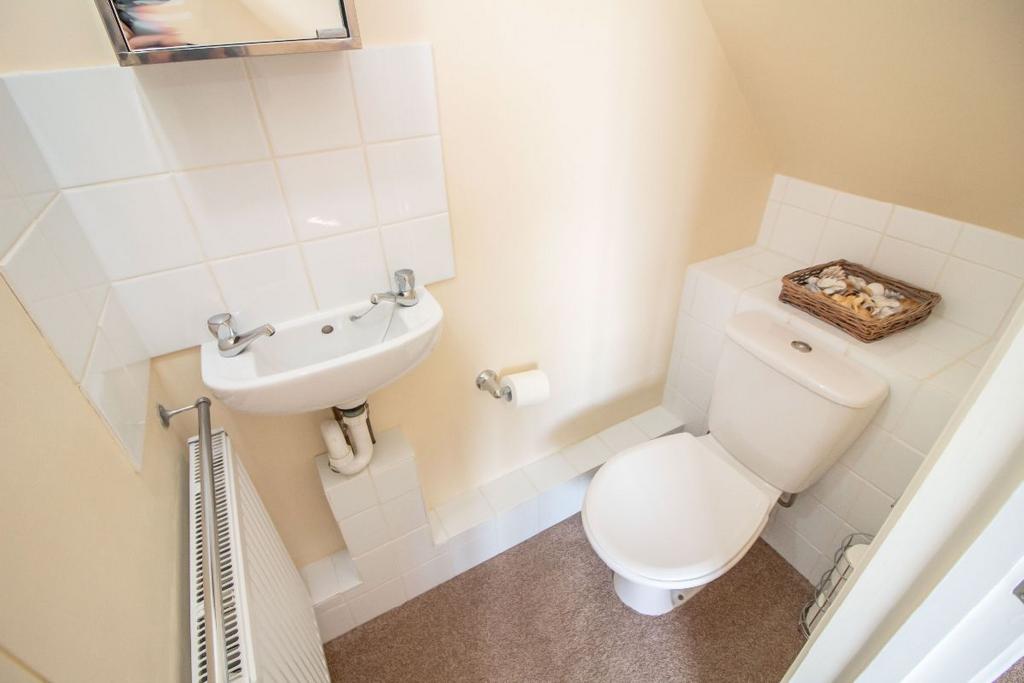 Close coupled low level wc, wash hand basin, radiator, extractor fan, tiled to principle areas.