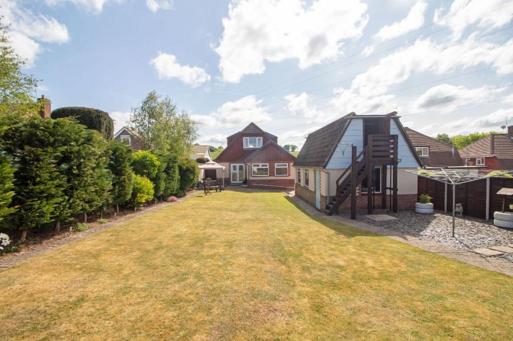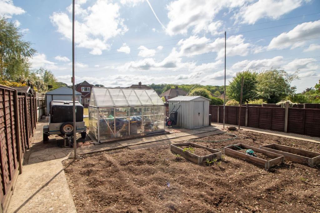 The frontage boasts extensive driveway stretching across front and down the side for multiple vehicles leading to the detached double garage. The remainder of the frontage is lawned. The large rear garden in excess of 100ft boasts a 'westerly' aspect, mainly laid with lawn, panelled fencing complement the side and rear boundaries, secured gated side access leads to bin store area, detached timber summer house with adjoining patio / seating area, partitioned trellis fencing leads to the extensive vegetable patch with metal garden shed and greenhouse to remain, external power points and outside tap.
