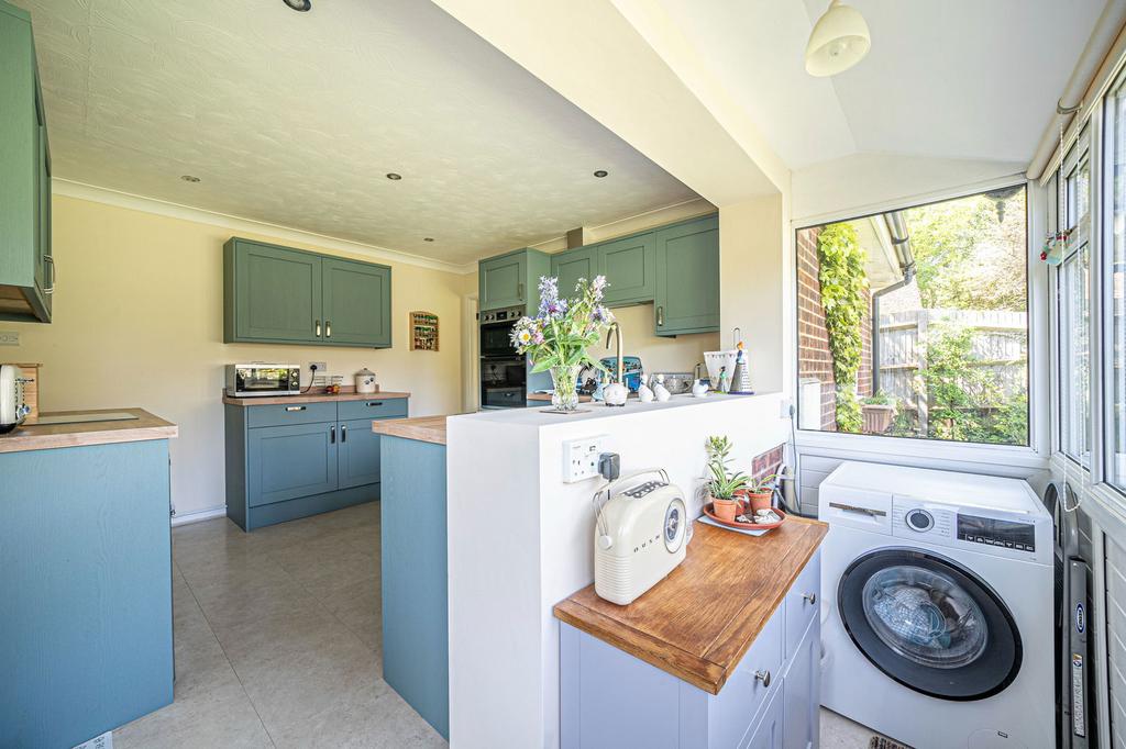 Upon entering the home, you're welcomed into a central hallway that provides access to all rooms. A living room creates an inviting space brightened by natural light due to the sliding doors that lead into the conservatory. This dual-aspect room overlooks the garden and provides a versatile space as a lounge extension, hobby area, or garden-facing dining space.