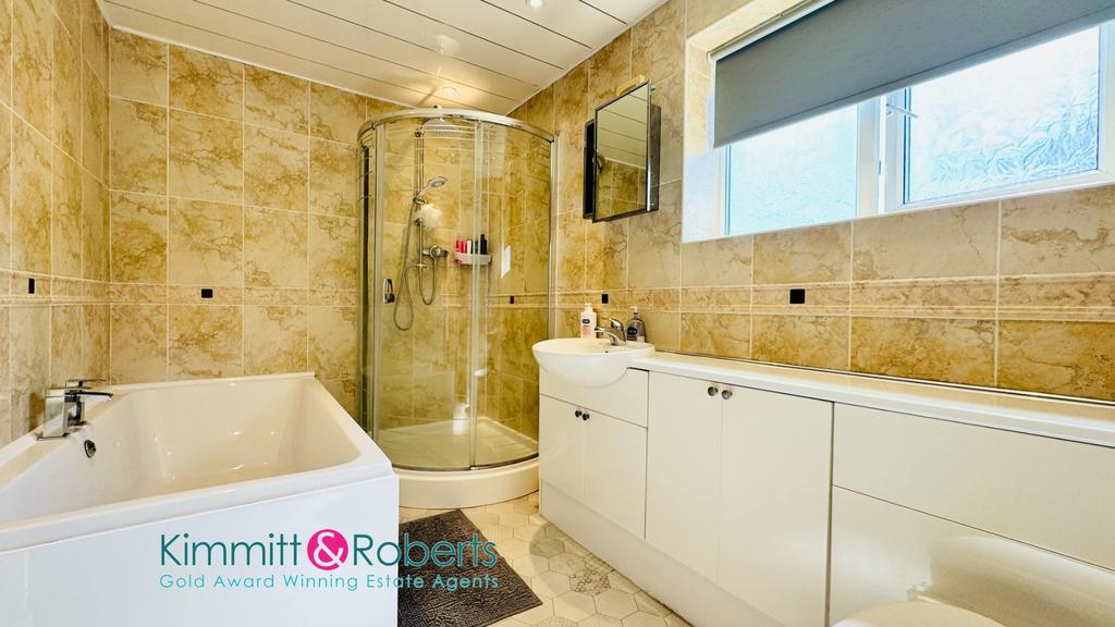 comprising of panel bath, WC, wash hand basin, tiled walls, tiled floor, radiator and double glazed window.