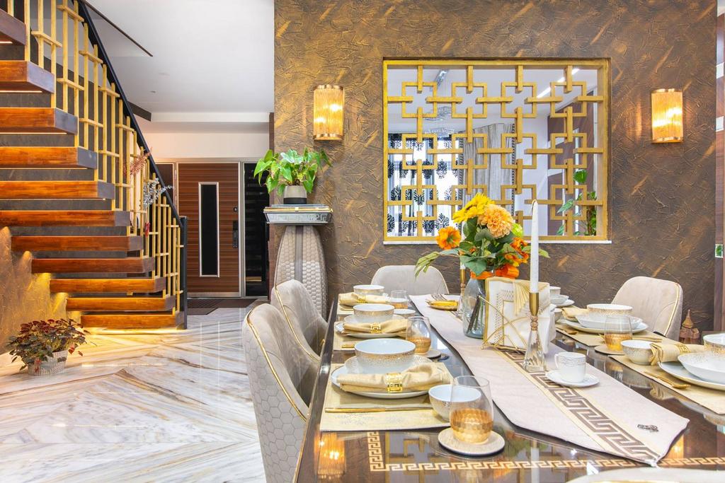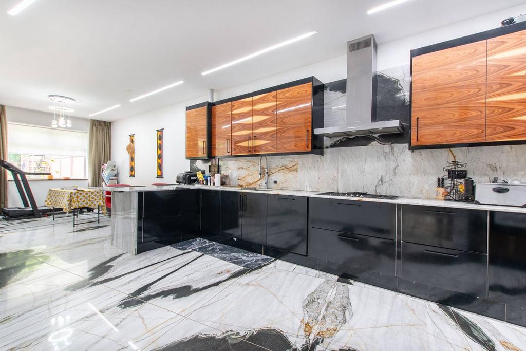 - Contemporary kitchen with ample space to dine