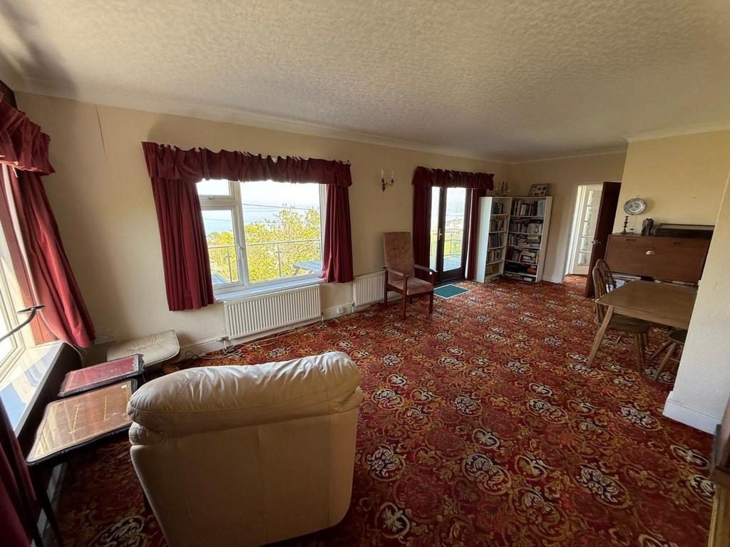 24' 4" x 21' 3" (7.42m x 6.48m) designed to maximise the glorious views to the front of the property over Cardigan Bay with large double glazed window to front and side, patio door leading out to front patio with glass balustrade, 2 central heating radiator, electric fireplace and surround, wall lights.