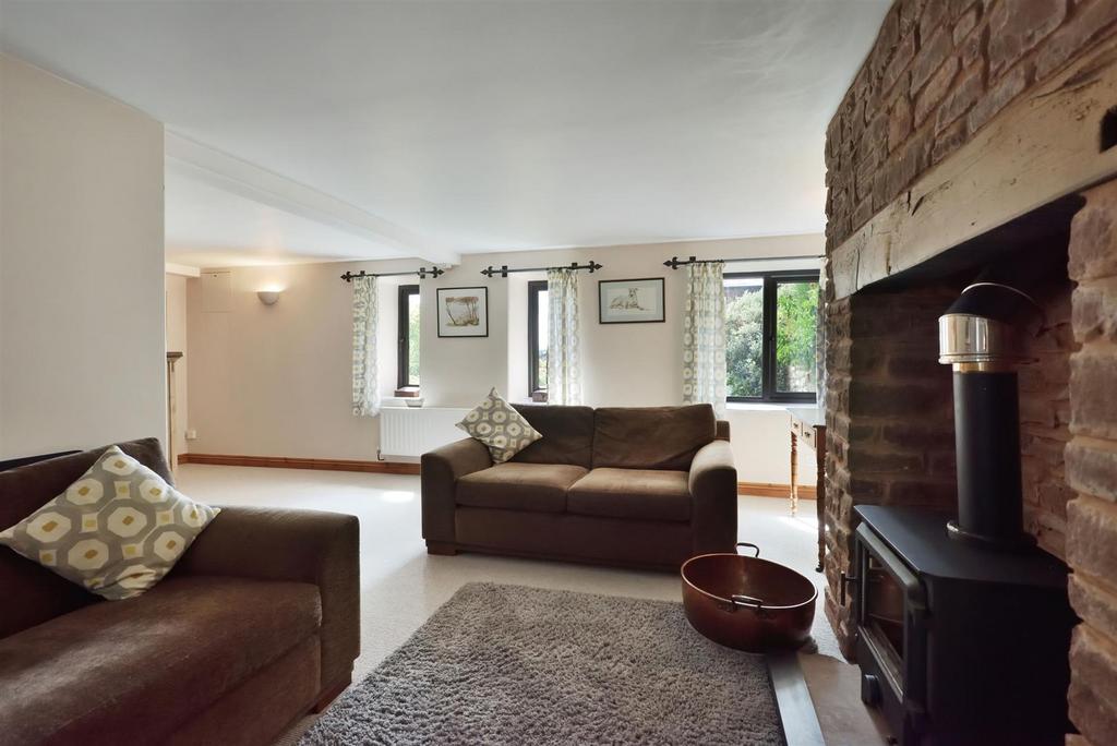 L-Shaped Lounge - Stone inglenook style fireplace with a woodburning stove, 2 radiators, 4 windows to front and rear.