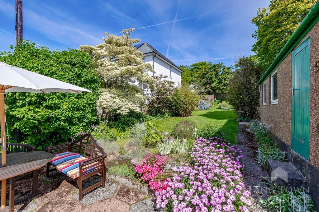 The garden is a true gardener’s paradise; meticulously stocked with flowering beds, mature shrubs, beautiful magnolia trees, and a serene pond. A patio area offers the perfect spot for al fresco dining or evening relaxation. There is also side access from the garden to the front of the property, enhancing practicality.