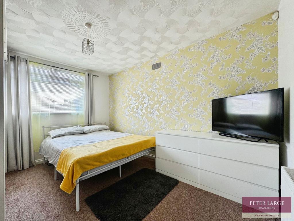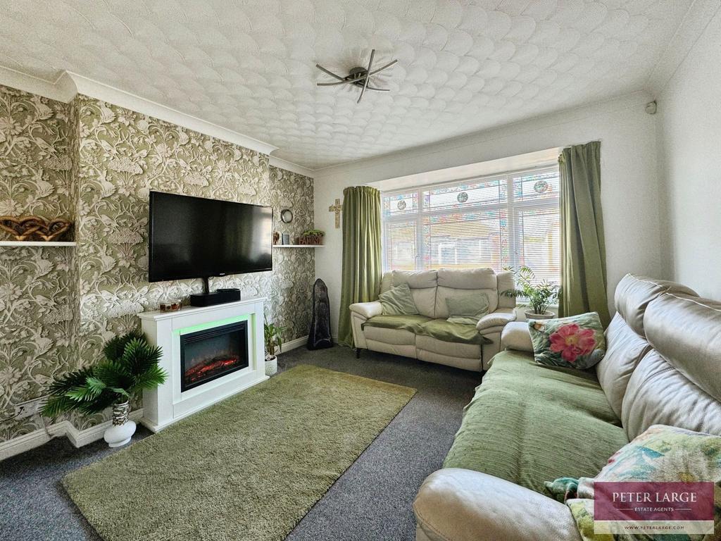 With uPVC double glazed box bay window overlooking the front, T.V aerial point, feature fireplace with remote control electric fire insert, radiator and coved ceiling.