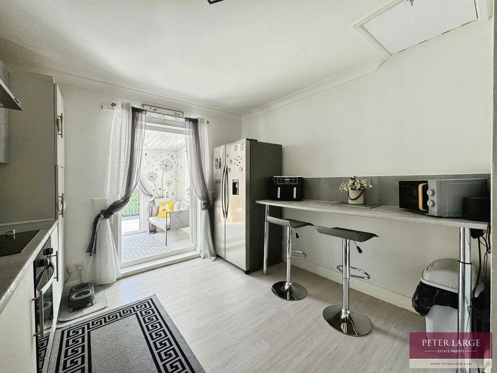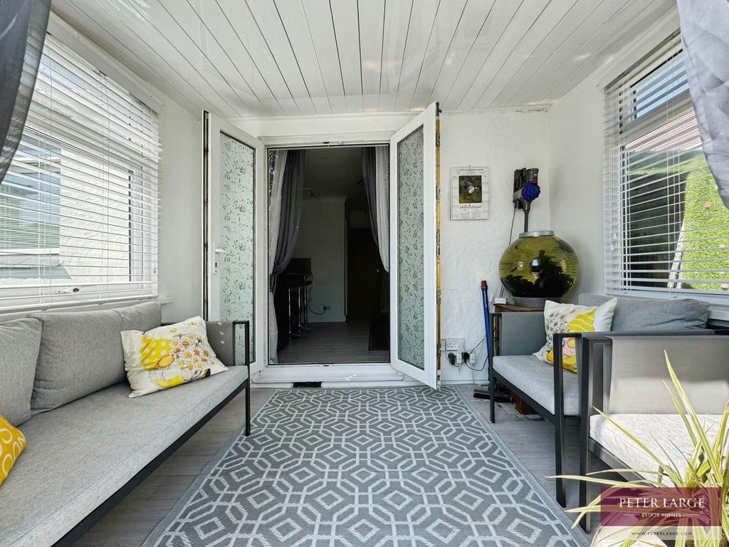 Having dual aspect uPVC double glazed windows overlooking either side, PVC ceiling and uPVC double glazed French doors giving access onto the rear garden.