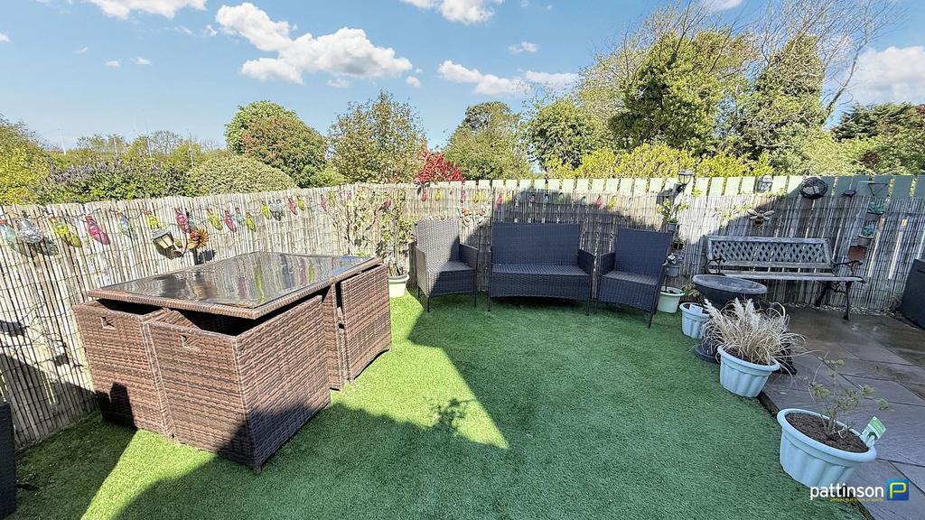 Briefly comprising; entrance hallway, ground floor cloakroom, lounge, kitchen/diner and utility room. To the first floor two double bedrooms both with fitted wardrobes, one single bedroom and modern four piece family bathroom. Externally to the rear and side an enclosed paved courtyard with perimeter fencing, bin store and gated access. To the front a lawned garden area and additional seating area with astro turf. A single garage sits in a block to the rear.