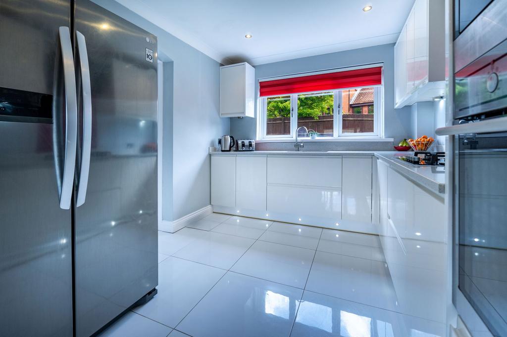 Off the kitchen, a well-equipped utility room provides space for a washer and dryer, along with direct access to the rear garden and the double garage—ideal for busy family life.