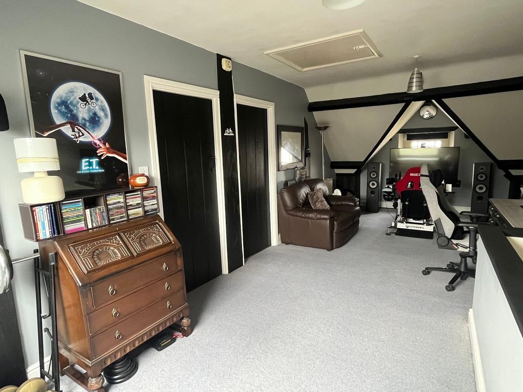 A spacious second-floor double bedroom featuring lovely views over the village and beyond. Eaves storage provides additional practicality, making the most of the available space.