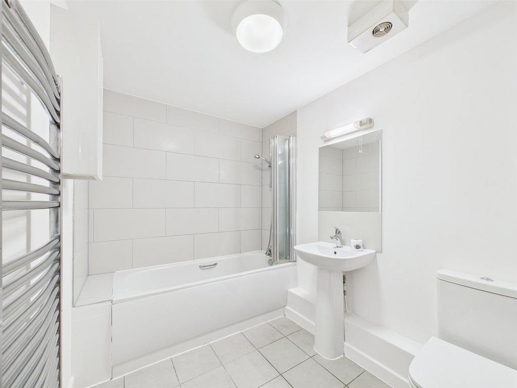 2.71m x 1.87m (8' 11" x 6' 2") The bathroom features a panelled bath with glass screen and shower attachment, low level w.c, electric chrome ladder style radiator, wash hand basin, tiled walls and flooring.