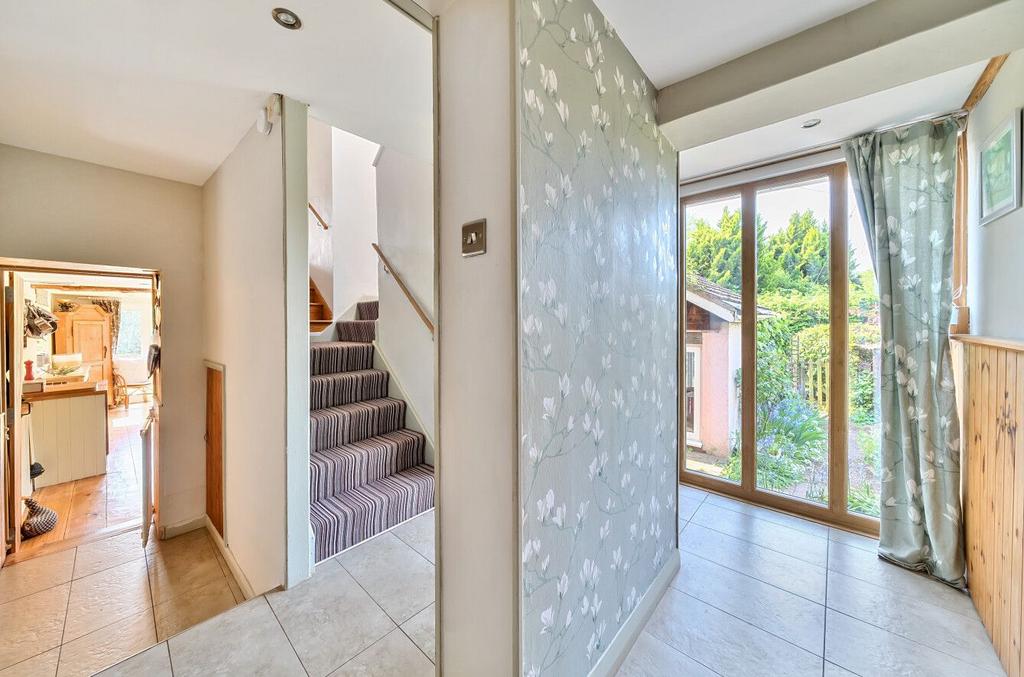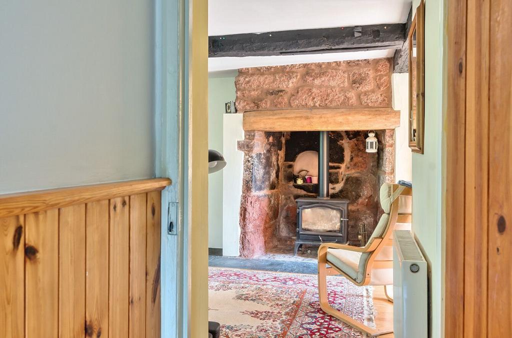 On entering, a welcoming entrance hall provides access to all ground floor rooms, including a beautiful farmhouse-style kitchen with ample room for a dining table and double doors leading into the garden. You will find a cosy living room with gorgeous fireplace with wood-burner and original beams.
