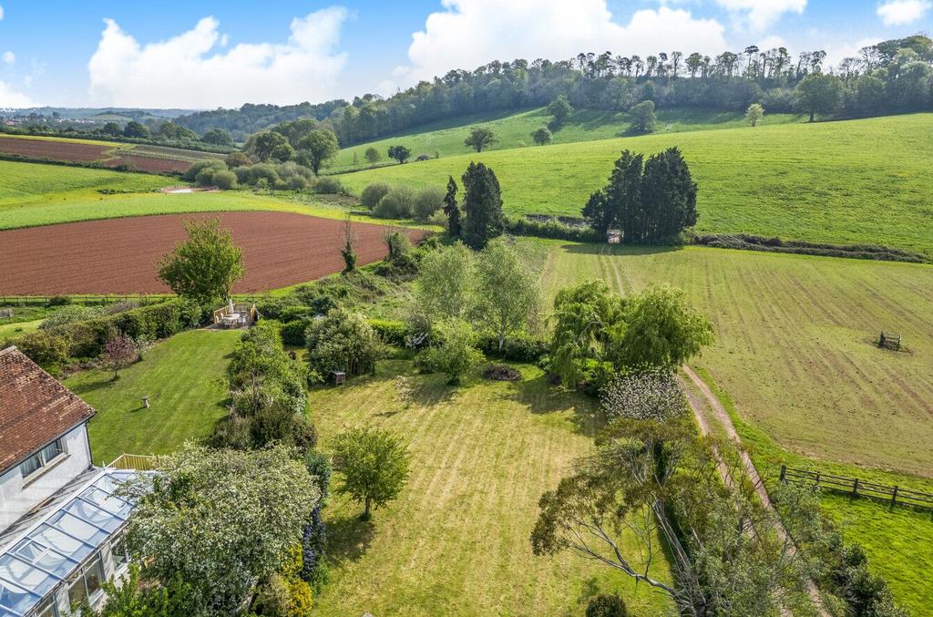 There is about 1/3 acre lawned rear garden which is East facing with a range of mature trees and shrubs. There is also a detached garage which is currently being used with two dual aspect double glazed windows, currently being used as a home office that could make a studio. Ample off road parking. Access from then land is by right of way, which is shared by the neighbouring farmland.