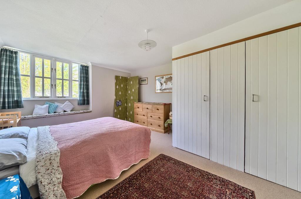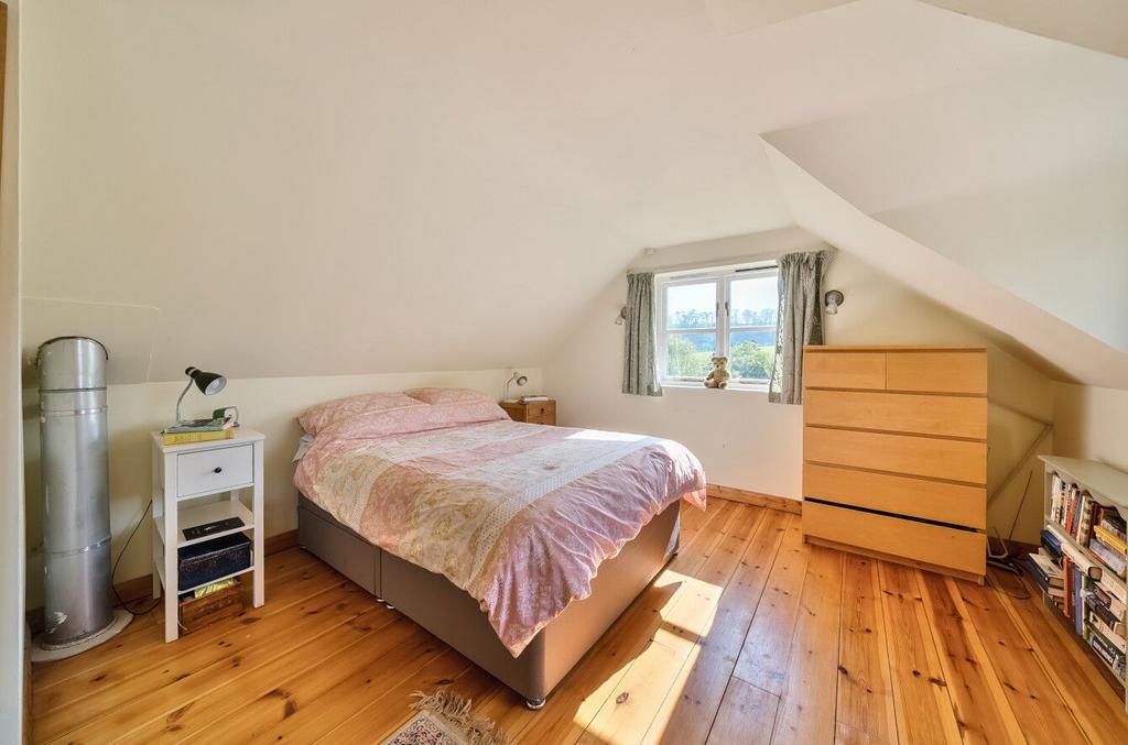 Upstairs, you will find four double bedrooms. The master bedroom is wonderfully bright with dual aspect windows and stunning views over the rear garden and rolling countryside.