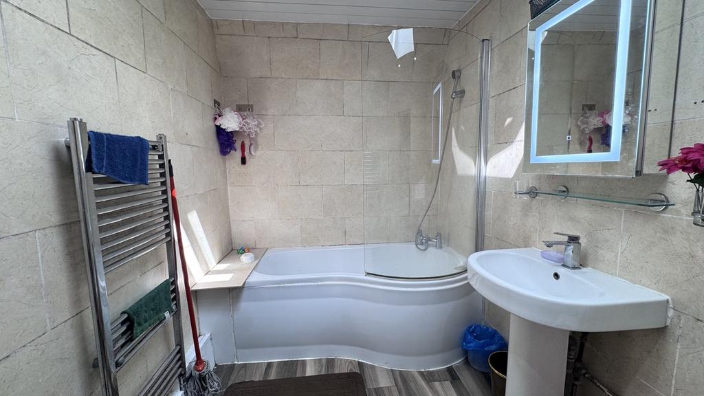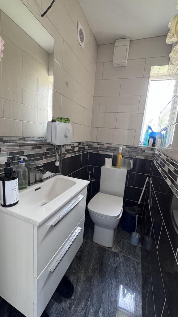 - Family Bathroom -Located conveniently on the ground floor, finished with sleek tiling and a full-size bathtub.