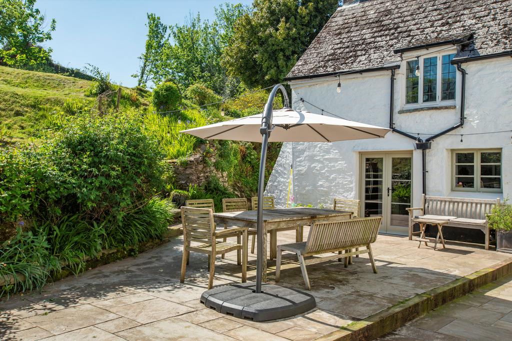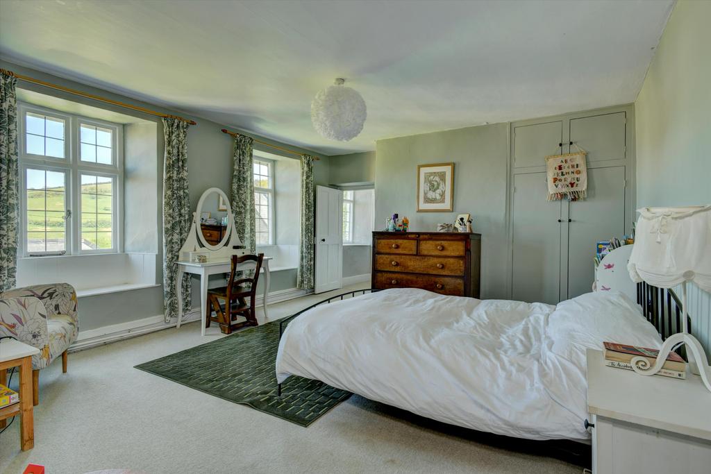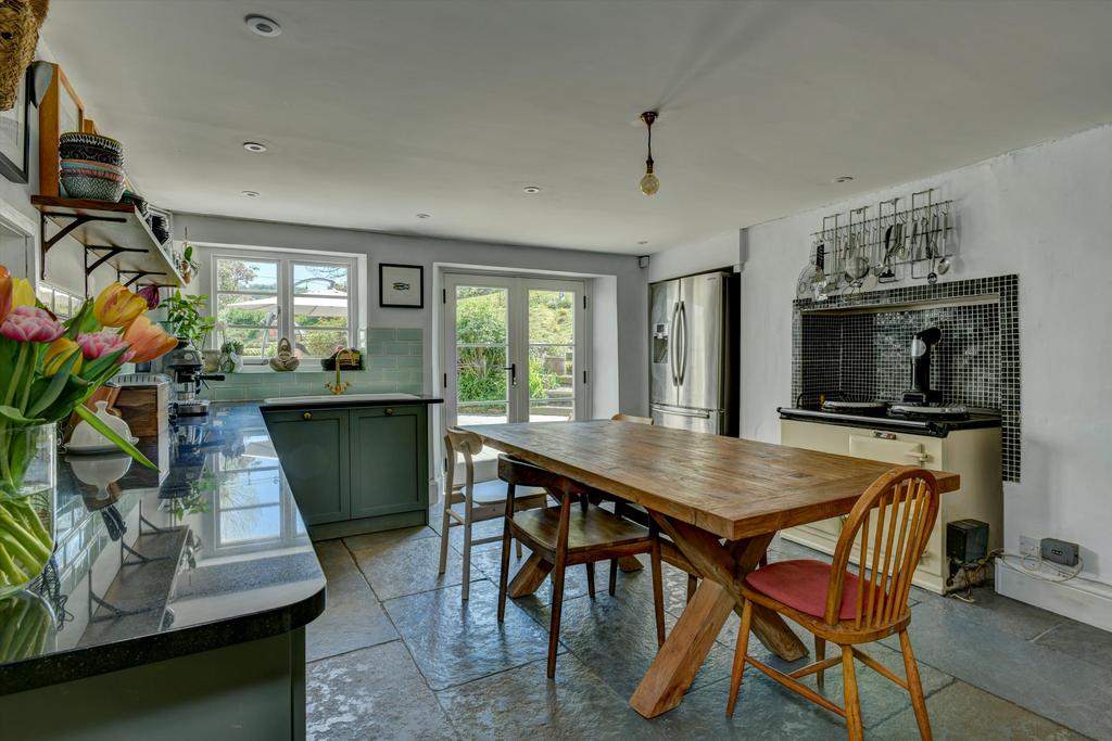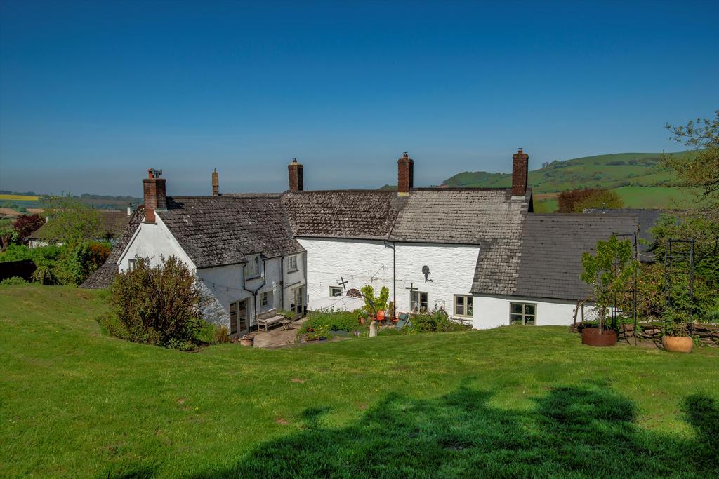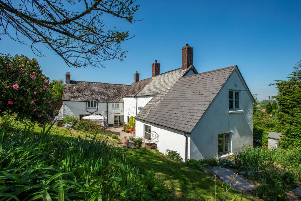 The house fronts onto a raised lawn beside a parking area for several cars, two garages with attached workshop and an impressive barn which has planning permission for conversion. Most of the garden and the pasture lies behind the house, where steps from a two-level, paved terrace rise to a sloping lawn dotted with mature trees and shrubs, and an vegetable garden. From the top of the garden there are breathtaking views across Exmoor extending on a clear day to Wales. Beyond the garden is an area of fenced pasture divided into three along with a good sized stable block, perfect for equestrian enthusiasts.