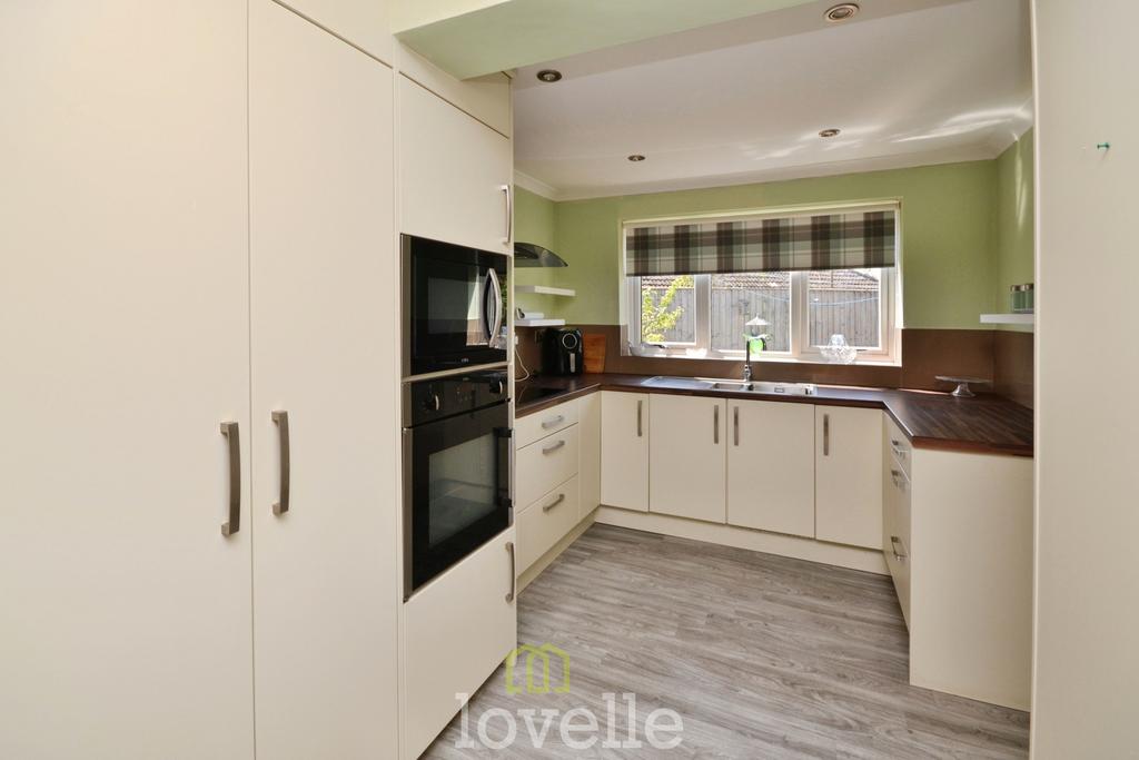The accommodation is all on one level and includes an entrance porch, inner hallway with fitted storage, a spacious lounge to the front with a feature fireplace, and a well-fitted dining kitchen with integrated appliances including an electric oven, microwave grill, induction hob, extractor, and fridge freezer.