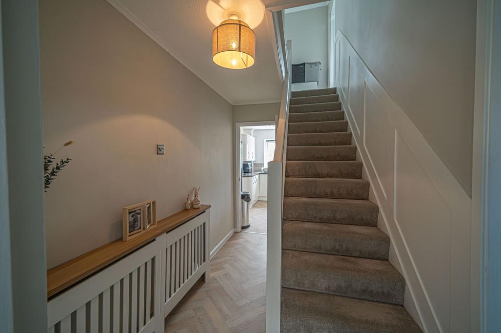This incredible property has been newly redecorated, and enhanced with a double storey extension from 2019, as well as a newly landscaped garden to both the front and the rear, with both sides providing access to the property. As we enter, we are welcomed into the hallway which leads to the kitchen, with an airy open plan design. The kitchen is both sleek and practical in design, and features plenty of fitted storage options and room for appliances, with a doorway to a helpful utility room and a W.C, with the former providing another access point to the garden. At the rear we also have the bright dining room, which enjoys bi-fold doors that effortlessly open to the garden. Connected via double doors we then lead into the living room which is lit up by bay windows to the front of the house, as well as featuring a charming fireplace. From the hallway we can find further storage space, as well as an entrance to the lower section of the new extension, where a spacious reception room currently being used as a fifth bedroom can be found. This additional space highlights a great deal of versatility that the property offers, being equipped to suit any of the families needs, with offering potential for another lounge space, entertainment room, home office, or even a gym.
