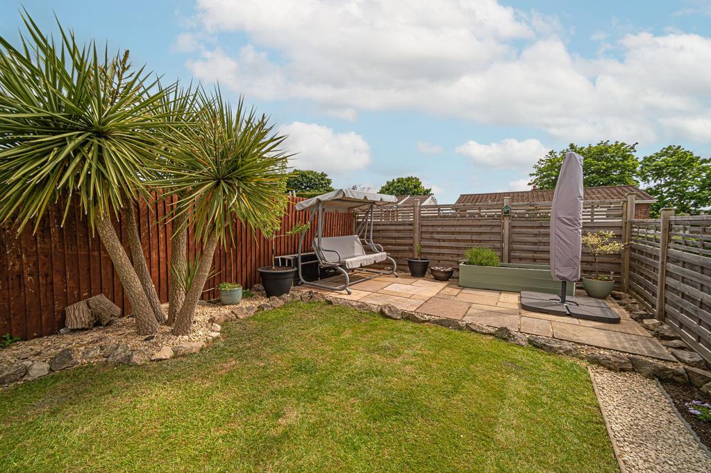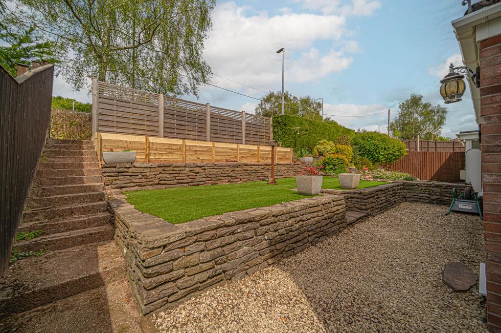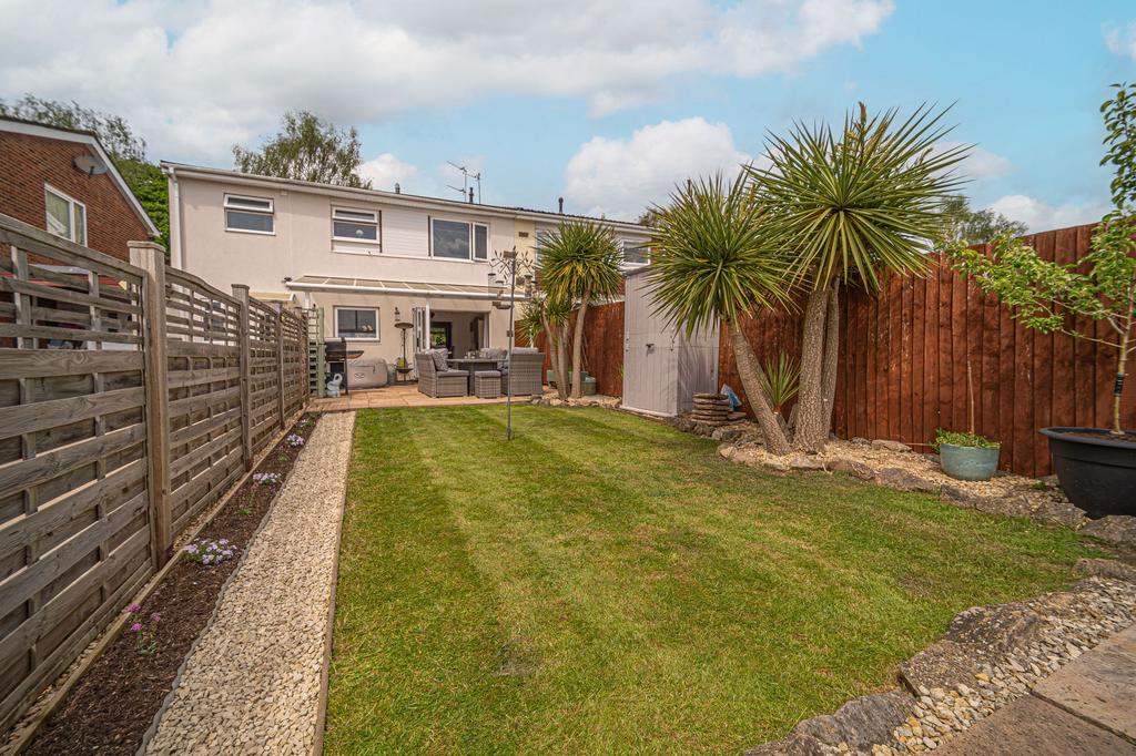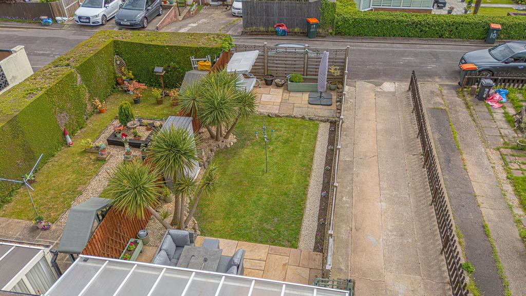 Stepping outside we have the magnificent rear garden, which offers an abundance of outdoor space for relaxing in the sunshine and entertaining guests over tea/coffee, or enjoying dining al-fresco style. The garden consists of two well sized patios found either side of the large grass lawn, which is accented with pebble stone and genuine palm trees to create a tropical atmosphere to this luscious garden retreat. The rear garden also connects to a spacious driveway, which can provide parking for 2-3 vehicles, connecting onto the street. At the front of the house there is another lovely garden space, ensuring residents can enjoy a great amount of sunlight throughout all hours of the day. This front garden is brand new, having been recently landscaped with a low maintenance turf, while a staircase leads us onto the main road to provide another access point to the property.