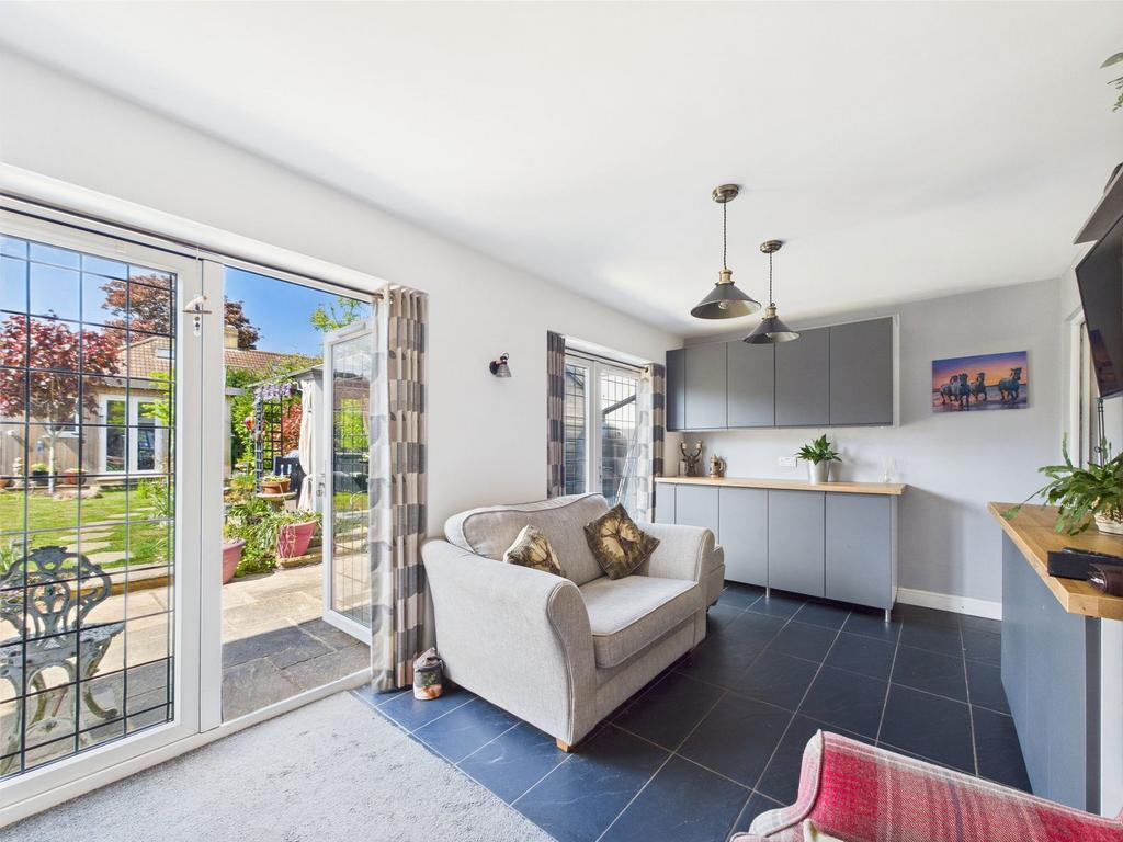 This extended family home offers generous and versatile living space, ideal for modern lifestyles. To the front, a bright living room features sliding doors opening into the dining room, which in turn flows effortlessly into the kitchen and family room, creating an open-plan feel perfect for both relaxing and entertaining. Running the full width of the property, the kitchen and family room form the true hub of the home, featuring a good range of fitted cupboards, a breakfast bar, and space for a dining table or sofa seating. Off the kitchen, a door leads to a useful utility room, a ground floor WC, and provides internal access to the garage. While the layout encourages open-plan living, thoughtfully placed doors offer the flexibility to separate spaces when desired. Upstairs, the well-planned accommodation continues with three spacious double bedrooms and a stylish family bathroom. The second bedroom enjoys delightful countryside views, while the impressive main bedroom boasts a large dressing area with fitted wardrobes, an ensuite shower room, and lovely views.