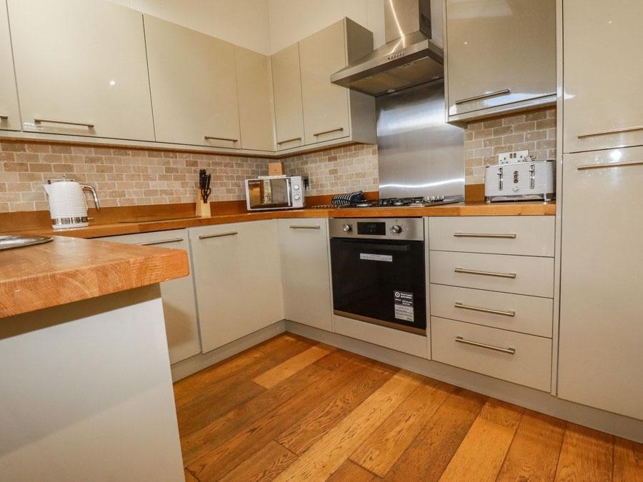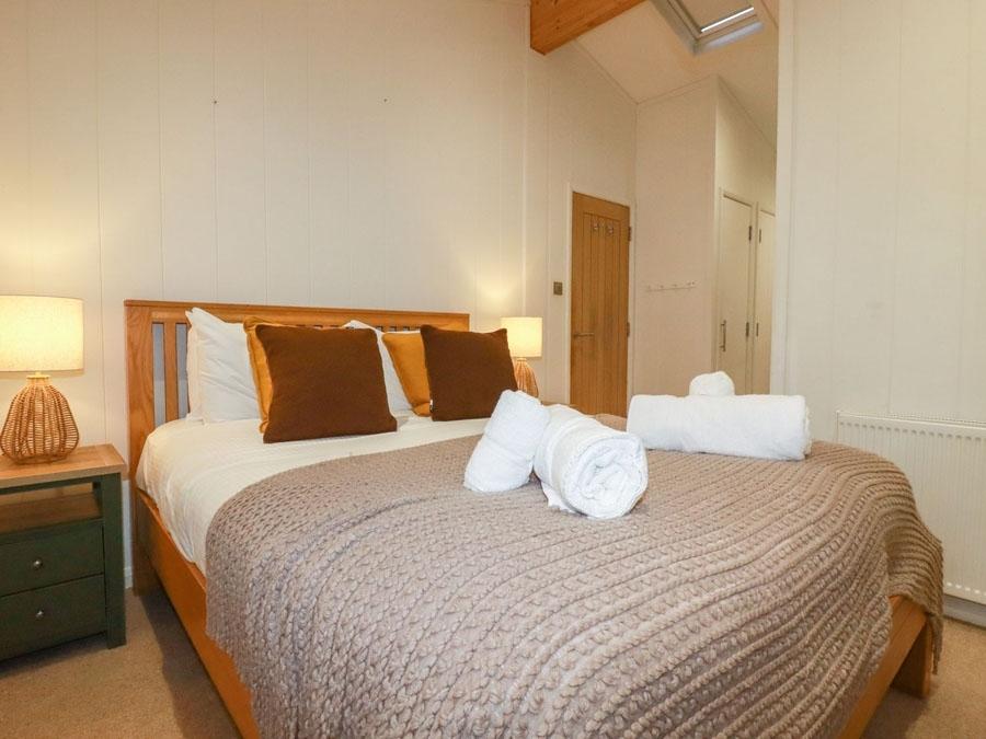 Inside, the holiday home offers two well-appointed bedrooms. The master suite includes a sleek en-suite shower room and a flat-screen TV, making it an ideal spot for lazy mornings. The second bedroom, furnished with twin beds, is perfectly suited for children or visiting friends and family.