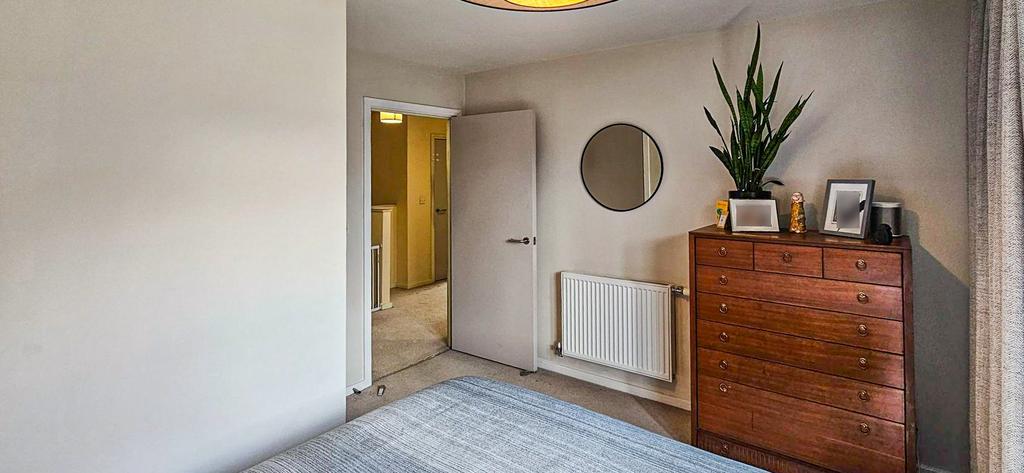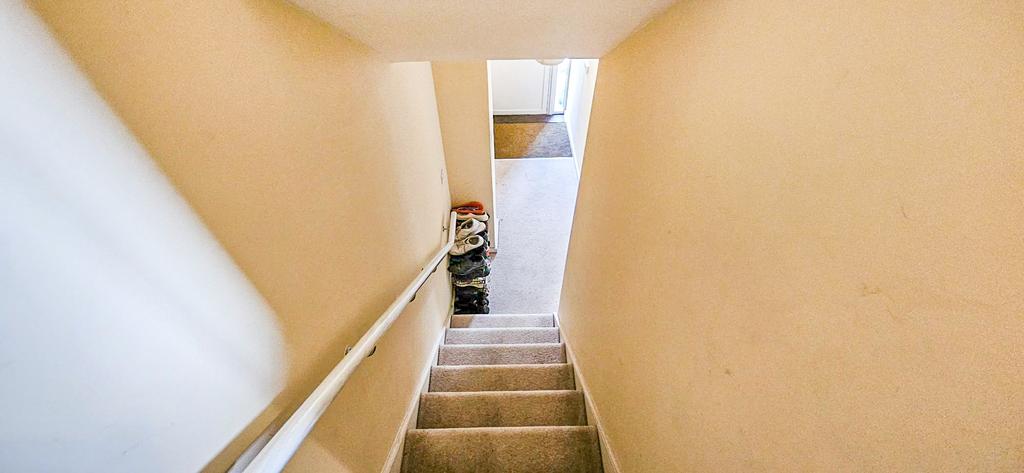 Own private front door leading to the hallway. Stairs to the first floor landing, a radiator, a cupboard housing the electric meter and wall mounted fuse box.