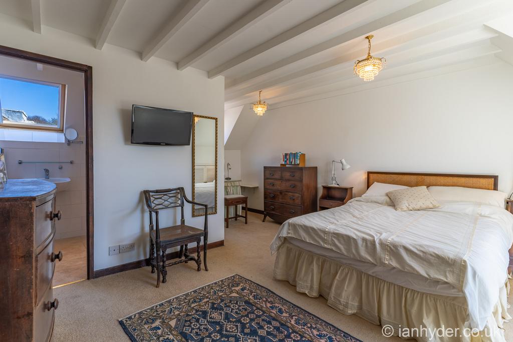 Comprising a splendid principal through room, being double aspect to front elevation and most pleasant westerly rear aspect, two radiators, built in double wardrobe and two deep eaves storage cupboards, beamed ceiling and door to: