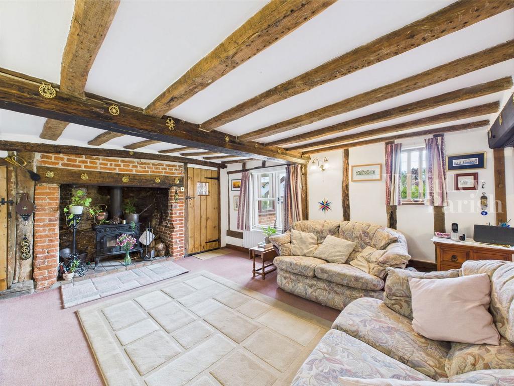 The property is a charming timber-framed cottage, believed to be around 500 years old. As expected from a home of this age, it boasts an impressive array of period features and unique character. The ground floor offers versatile living space, including two generously sized reception rooms, both featuring inglenook fireplaces. To the rear, you'll find a spacious kitchen/breakfast area that overlooks the pretty cottage gardens, with convenient access to a centrally located utility room. Additionally, the ground floor benefits from a shower room, a home office and a fourth bedroom, which could serve multiple purposes if not required as a bedroom. To first floor level, there are three further bedrooms and a well-equipped family bathroom, providing comfortable accommodation for the household. Overall, the property spans approximately 1,650 sq ft.