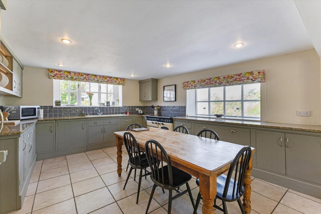 On the first floor the principal bedroom with en suite bath/shower room, has superb views over farmland to wooded hills. There are three further double bedrooms and family bath/shower room.