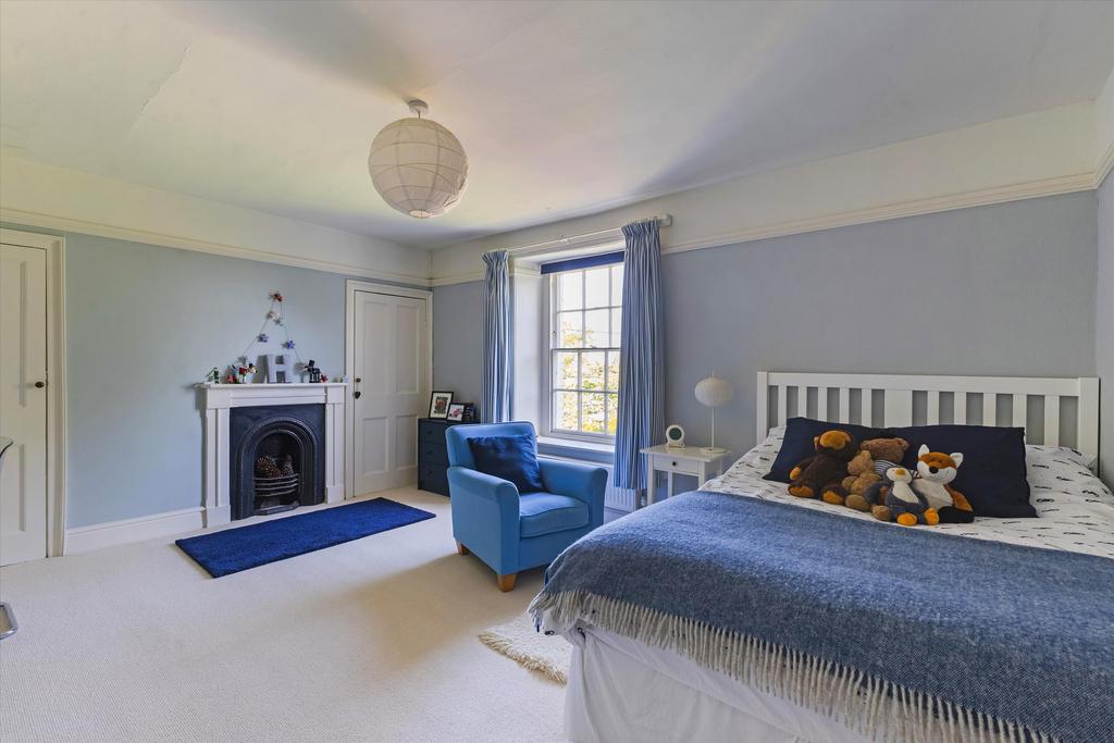 The family room, which is an atmospheric room, is fitted with a period grate and looks over the pretty garden as does the sitting room which has a wood burning stove and is linked to the music room by a wide archway. The rear hall could easily be used as a dining hall and the study overlooks the entrance drive. The breakfast kitchen with wood painted units and integrated appliances including range cooker, dishwasher, and fridge/freezer, has French doors in the breakfast area opening to the garden.