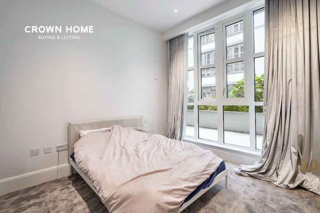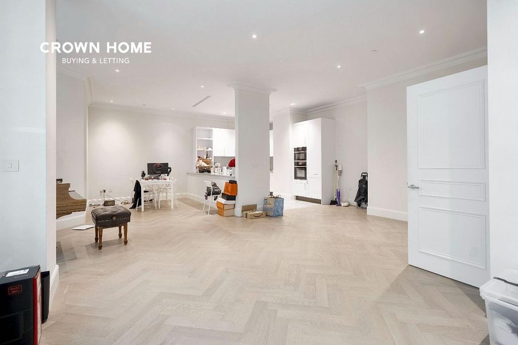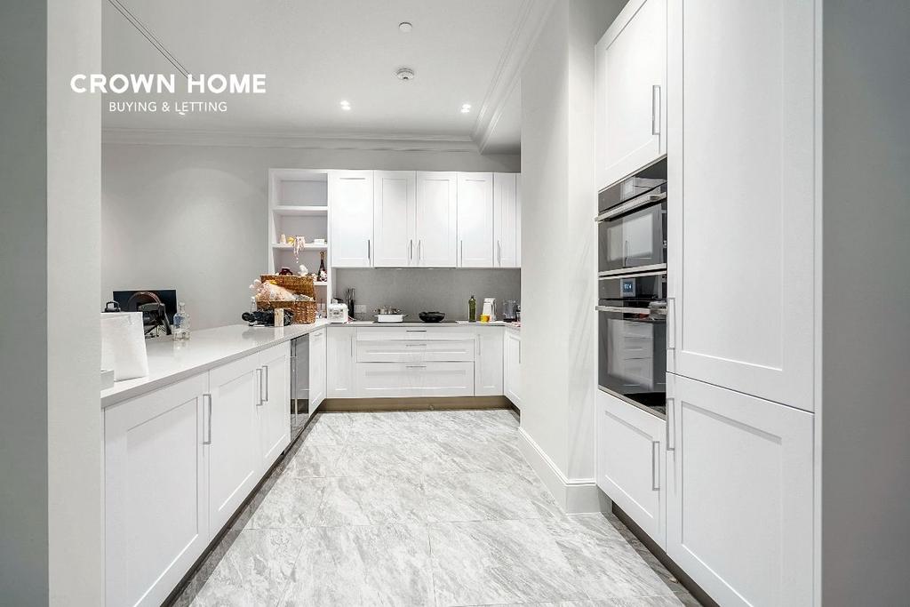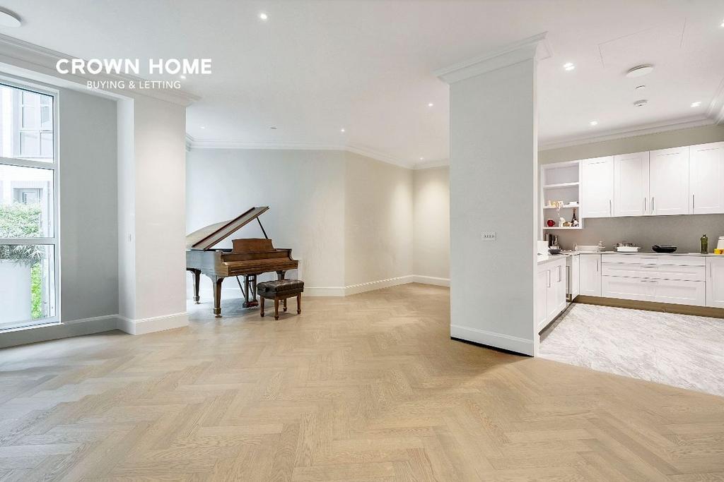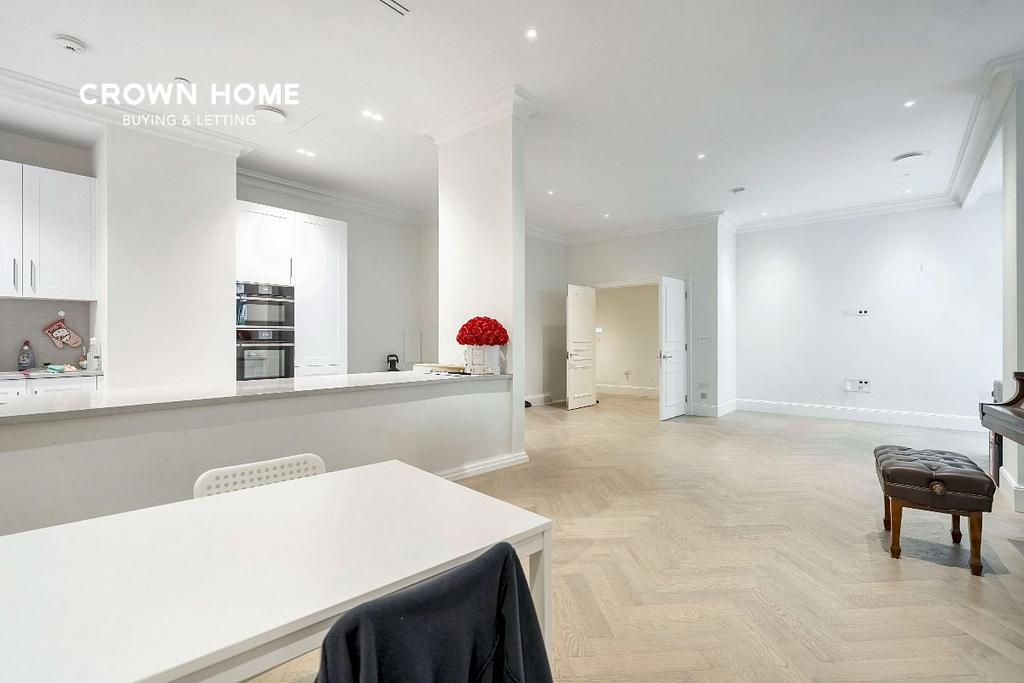 This exceptional three-bedroom, two-bathroom apartment is set within a Grade II listed building in the heart of Westminster, just a short walk from Westminster Station. Spanning 1,510 sq ft, it features a spacious private terrace and blends classic architecture with modern luxury. The open-plan living area boasts engineered timber flooring, while the fully integrated kitchen-separated by a generous countertop-includes composite stone surfaces, a Küppersbusch multi-function oven, combination microwave, fridge/freezer, and dishwasher.