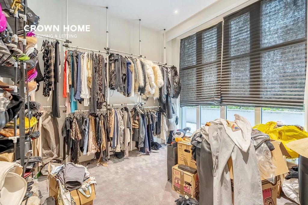 Additional highlights include a large walk-in wardrobe and a separate utility cupboard with washer/dryer and extra storage space.