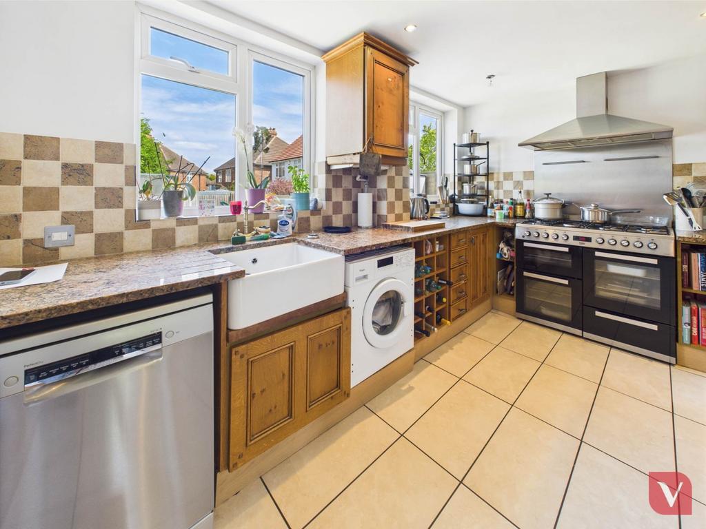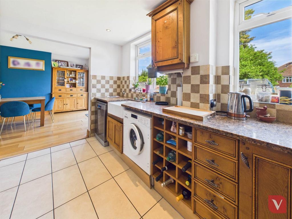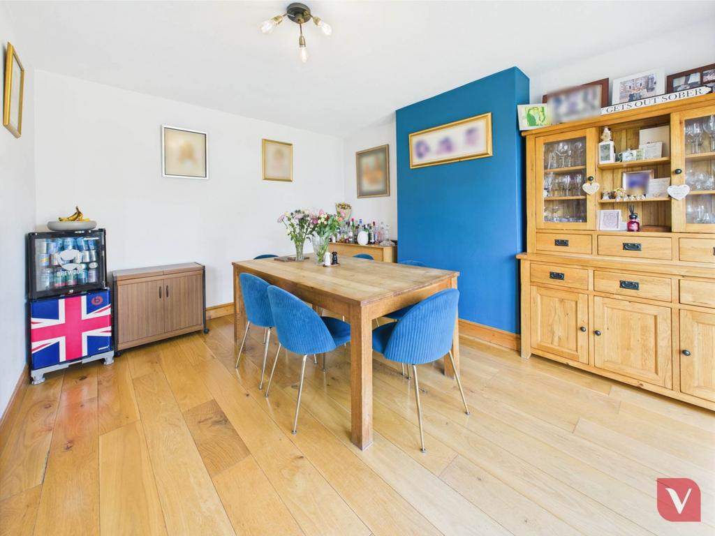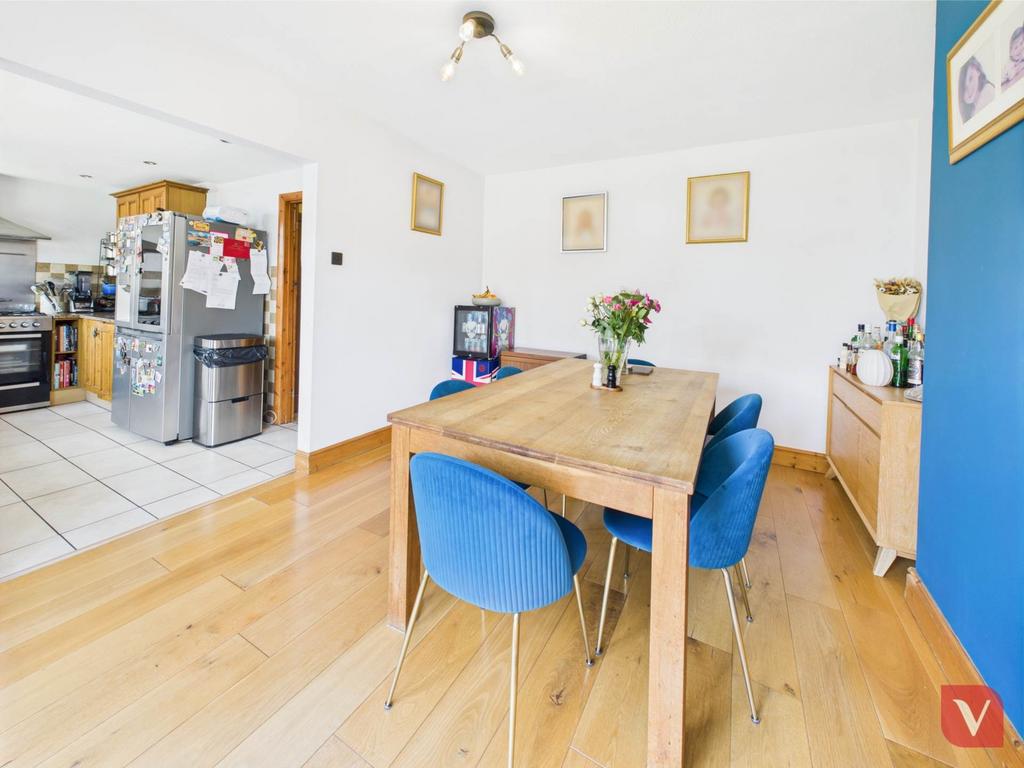 Upon entering, a generous entrance hall welcomes you into this spacious residence. To the front, a bright and inviting living room with a charming bay window offers an ideal space for relaxing or entertaining. At the rear, the modern fitted kitchen seamlessly connects to the dining area, creating an open, sociable layout perfect for family meals and gatherings. The dining room opens directly onto a private rear garden, ideal for children, outdoor dining, and summer barbecues.