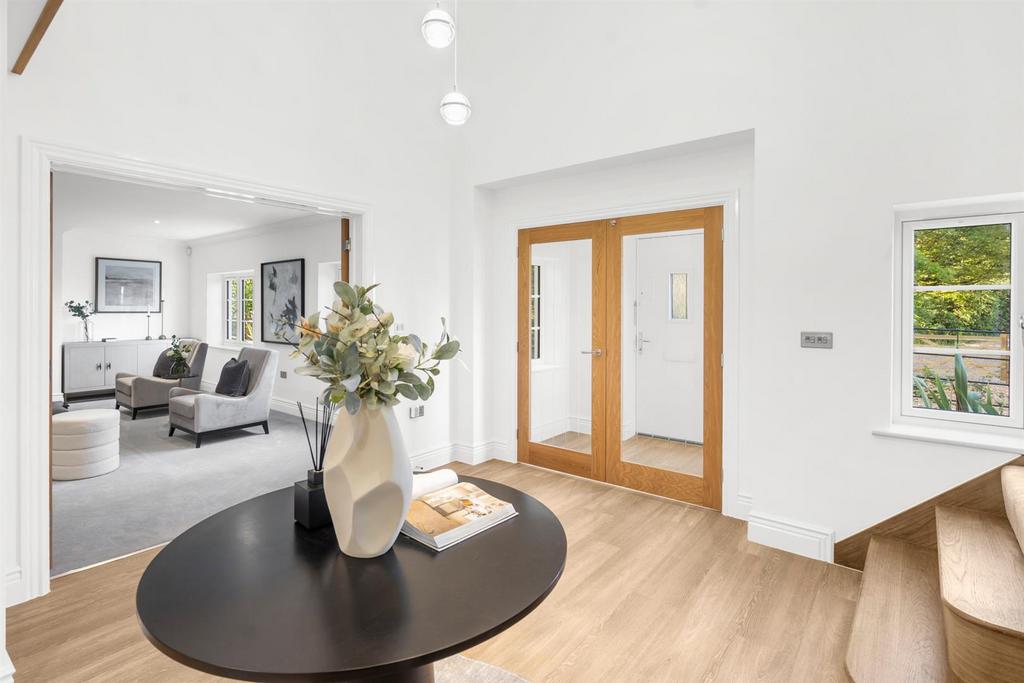 New Berkeley House is the pinnacle of opulence, with five double bedrooms and five luxurious bathrooms. Fitted wardrobes and an extra vanity area in bedroom 1 add to the grandeur. Two feature log burners create an ambiance of warmth and style throughout. The open-plan kitchen/breakfast/family area is a chef's dream, complete with bespoke design and a large larder/home hub. A separate dining room and bi-fold doors to the rear garden ensure a seamless flow between indoors and outdoors. Underfloor heating on the ground floor adds to the allure of this exceptional residence, which is conveniently adjacent to the village green. Fully floored throughout including karndean flooring downstairs, carpets to the reception rooms and full tiling to the main bathrooms and ensuites. New Berkeley House includes £20,000 worth of additional upgrades