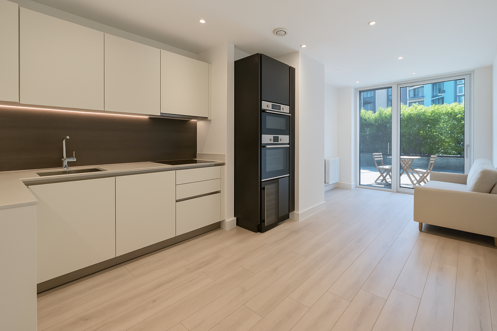 This beautifully presented 1-bedroom, 1-bathroom ground floor apartment offers 521 sq ft of internal living space complemented by an expansive 587 sq ft private terrace.