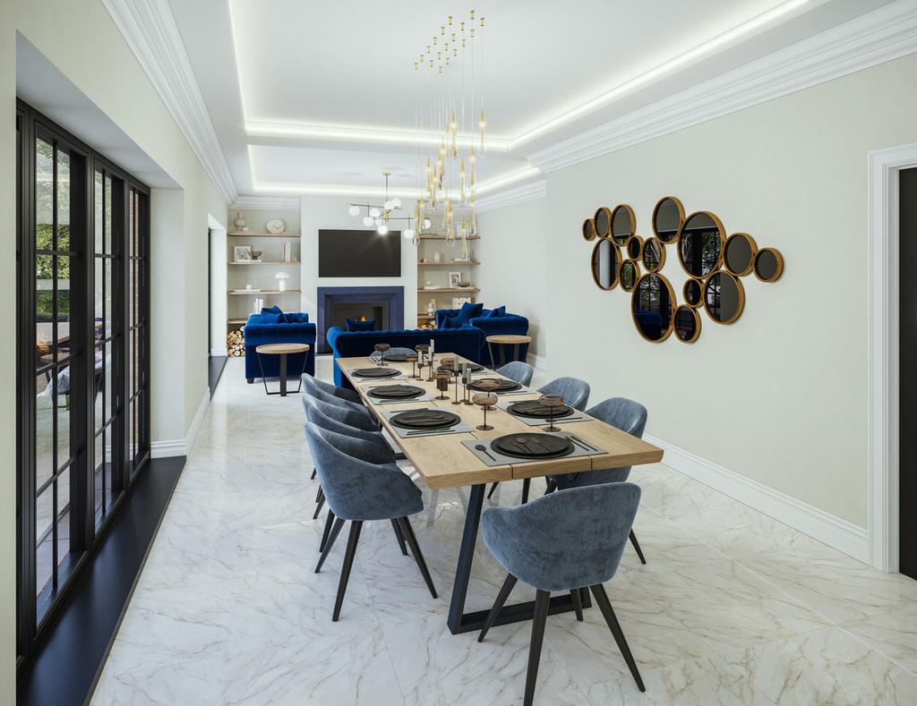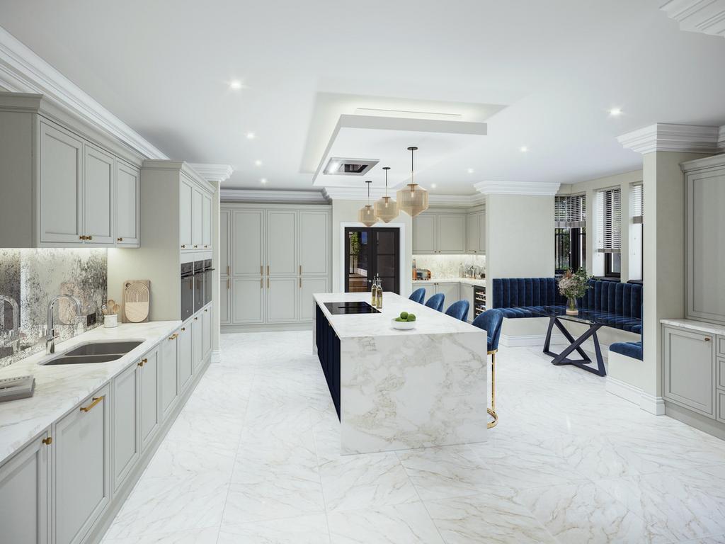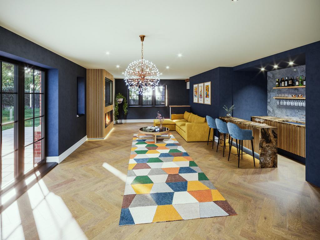 The property will be constructed to a high standard by experienced craftsmen in traditional materials, combined with up to date innovative technology and many bespoke features. Field View House is a reinterpretation of an Arts and Crafts style country home providing generously proportioned and versatile accommodation featuring an expansive well appointed kitchen and living area, separate media/garden entertaining room, library and office. Across the first floors are five large bedrooms each with en-suite bathrooms and either a fully fitted dressing room or wardrobes. Having an independent access bedroom five is ideal for either older children or a live in nanny.