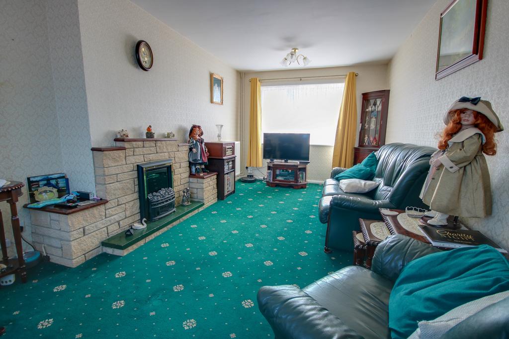 Smooth ceiling, double glazed dual aspect window to front and rear, electric fireplace and surround, two radiators.