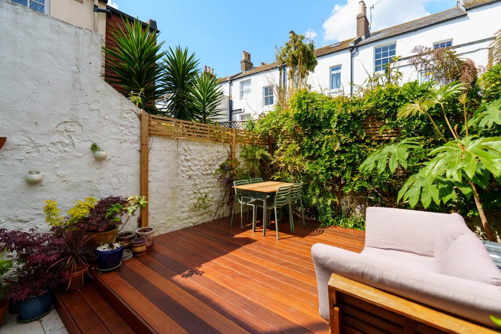 The garden itself is a true highlight of the property. As a west-facing outdoor area, it enjoys an abundance of afternoon and evening sunlight, making it ideal for entertaining or relaxing during warmer months. Featuring Belau hardwood decking, mature plants providing a tranquil setting, outdoor power sockets, and a storage shed, it is a versatile and low-maintenance outdoor space.