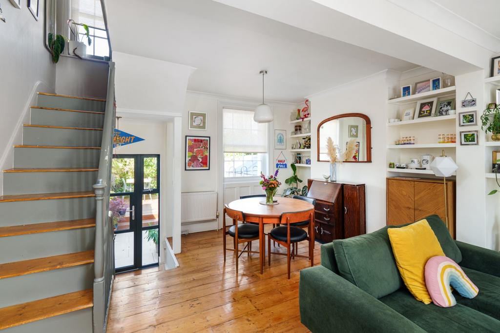 Upon entering through the front door, you are welcomed into an entrance porch, which leads directly into a through lounge. This spacious reception room is filled with light streaming in from multi-paned sash windows positioned at both the front and rear of the property. Retaining its period style, the room features a characterful feature fireplace, exposed wooden flooring, and provides access to the rear garden via a newly fitted aluminium door. A couple of steps lead down to this door, further enhancing the sense of space and seamless indoor-outdoor living.