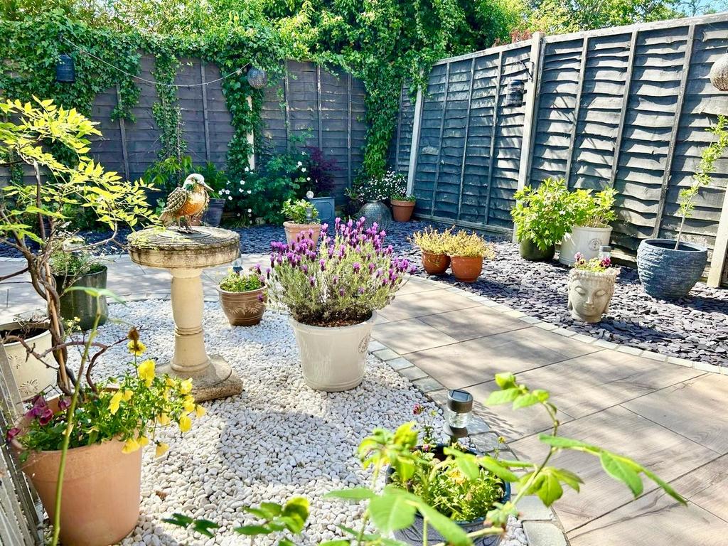 Outside the sunny aspect rear garden is designed with low maintenance in mind and laid with attractive porcelain slabs and complementary gravel borders.