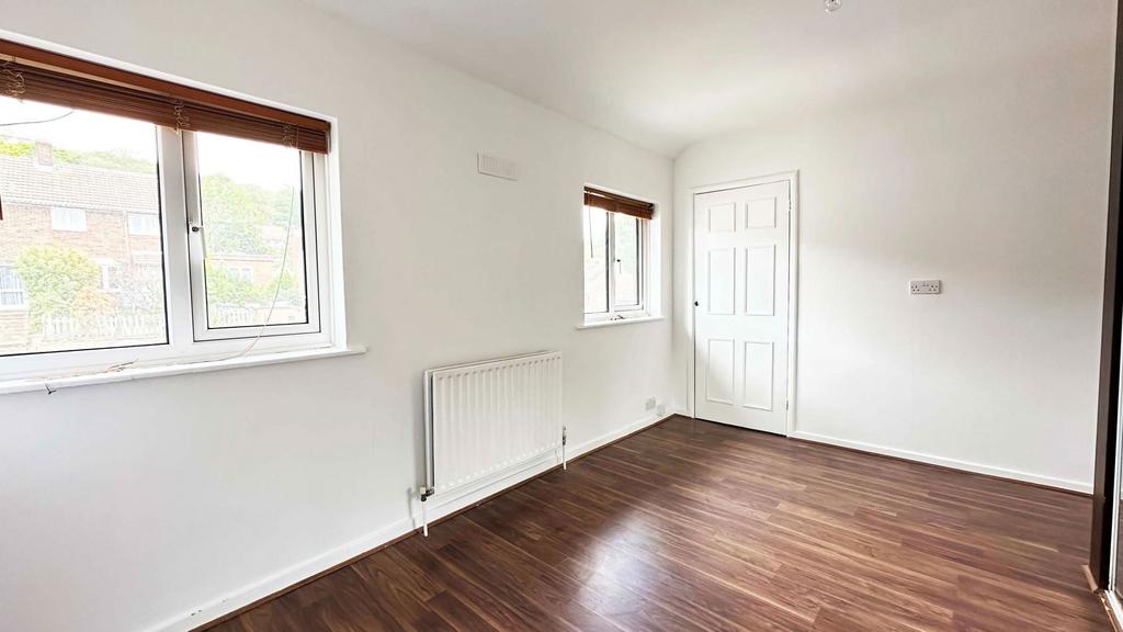 Bedroom 2 – 10’9” x 10’ – Double glazed window to rear, laminate flooring, 1 x radiator, storage cupboard