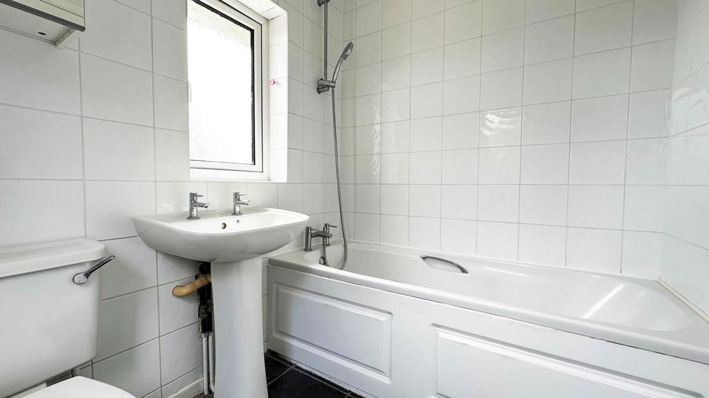 Bathroom – 6’7” x 5’4” – Double glazed frosted window to side, double glazed frosted window to rear, White suite comprising panelled bath with hand shower attachment, wash hand basin, low level w.c, tiled walls, tiled floor, chrome heated towel rail