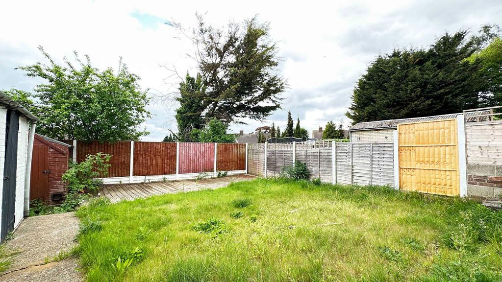 Garden – Approx. 35ft – Lawn, two brick storage sheds, timber shed, decked area to rear, side gate access