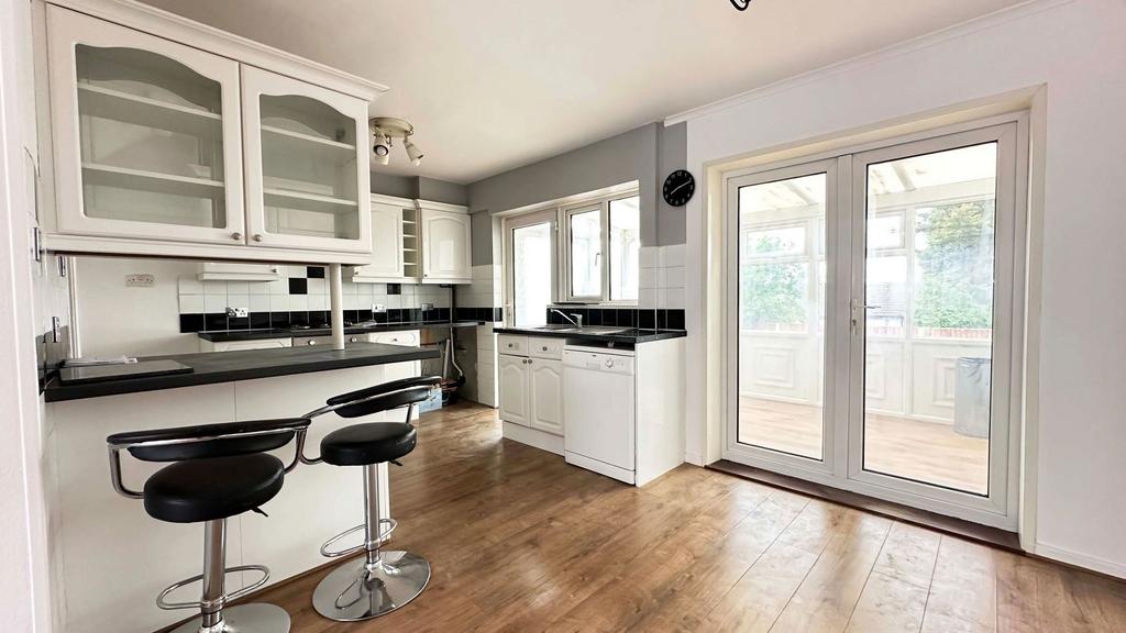 Kitchen/Diner – 10’6” x 9’9” - Open plan to dining and living area, Double glazed door to conservatory, two double glazed windows to rear, range of fitted wall & base units with work top, sink & drainer, built in oven, hob & extractor